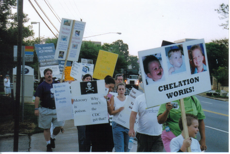 Per fortuna ci sono molte persone che non sono disposte a lasciare che questo accade, e sono soprattutto i genitori ed i parenti dei bambini diventati autistici in seguito alle vaccinazioni pediatriche. Qui sotto la foto di una dimostrazione contro l'avvelenamento mercuriale tramite vaccinazione; in evidenza un cartello con la scritta "la chelazione funziona" (la chelazione è un procedimento di disintossicazione dal mercurio e da altri metalli pesanti).