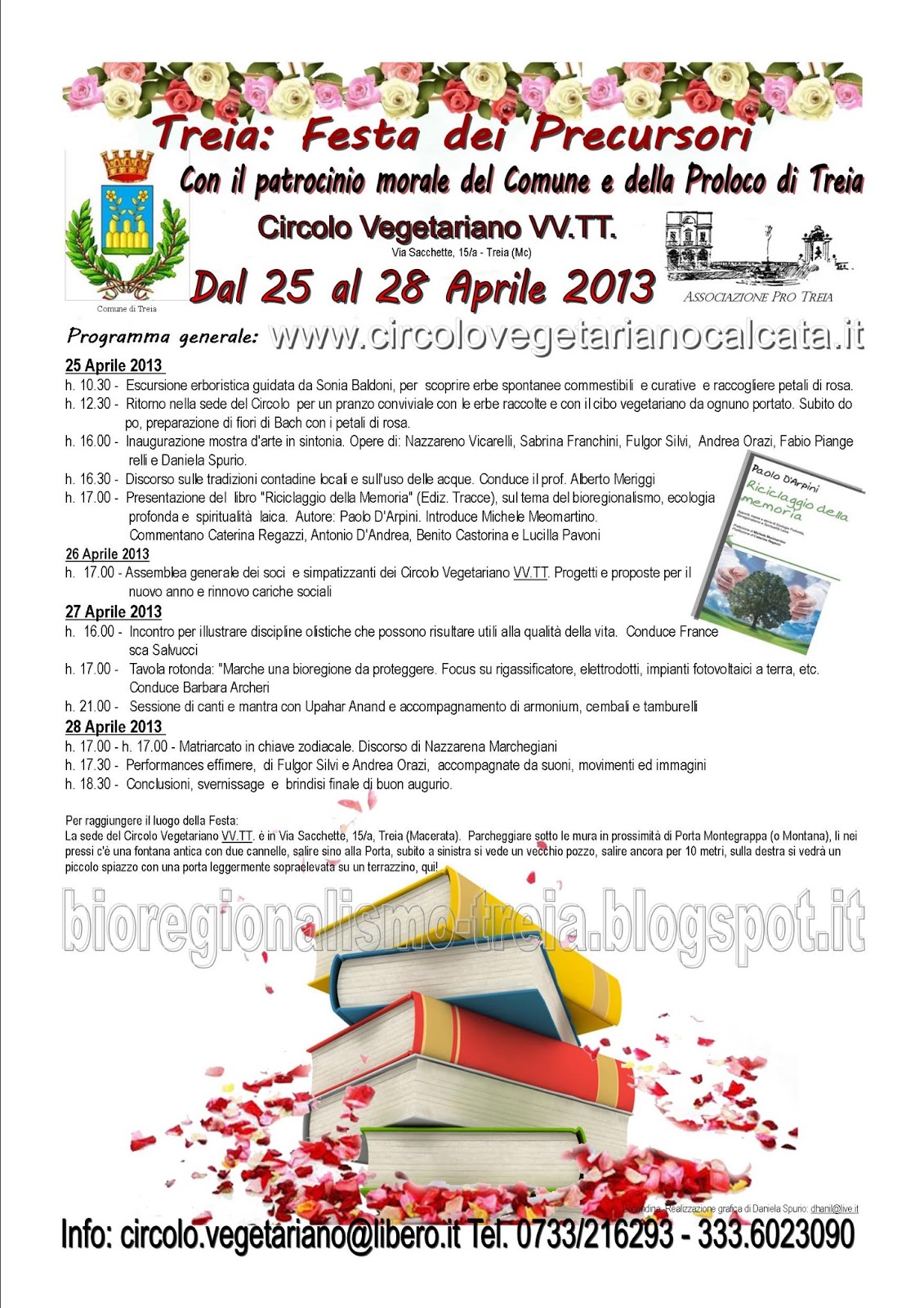 Ringrazio di cuore Paolo D’Arpini per l’invito che per la seconda volta mi ha rivolto per partecipare alla Festa dei Precursori –immagino– per far ascoltare agli ospiti una voce che riferisce di storia e tradizioni locali legate alle tematiche di cui il Circolo vegetariano VV.TT. si occupa.