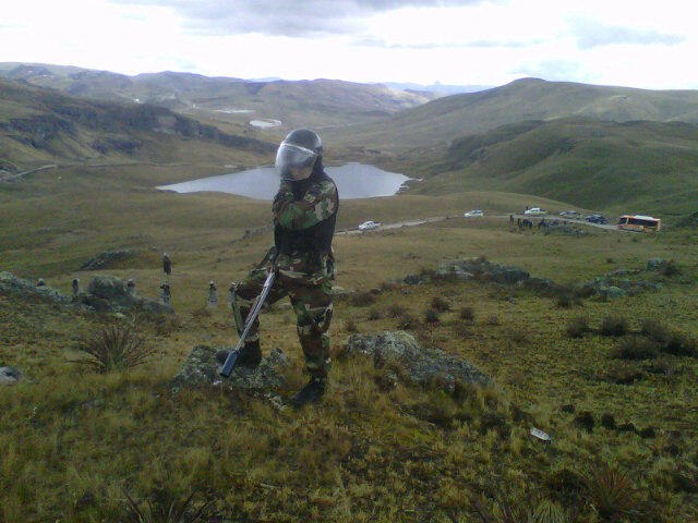| NON SIAMO UNO, NON SIAMO NEANCHE DUE...Questa frase si ascolta tra le montagne di Conga e, come una eco, si sente rispondere: "Non siamo uno, non siamo neanche due, siamo due provincie con una sola voce" Con questo vogliamo dimostriamo alla stampa della DBA e al mondo intero che non è solo un piccolo gruppo quello che si oppone al saccheggio e alla distruzione delle ultime riserve di acqua naturale di Cajamarca; il fatto è che le varie delegazioni arrivano alle lagune Cortada, Perol, Azul e Mamacocha da diverse entrate. | ![]() |  | Un gruppo di ronderas e ronderos (donne e uomini che fanno parte delle ronde contadine) di Bambamarca hanno ricevuto sul cerro Mamacocha il presidente regionale Gregorio Santos Guerrero, che è momentaneamente in vacanza e così ha potuto approfittare per unirsi ai guardiani/e delle lagune che già da 10 giorni resistono esponendosi all'inclemenza del tempo. Le loro uniche protezioni sono teli di plastica che utilizzano come tende per difendersi della pioggia (le lagune si trovano a oltre 4.000 metri d'altitudine). |